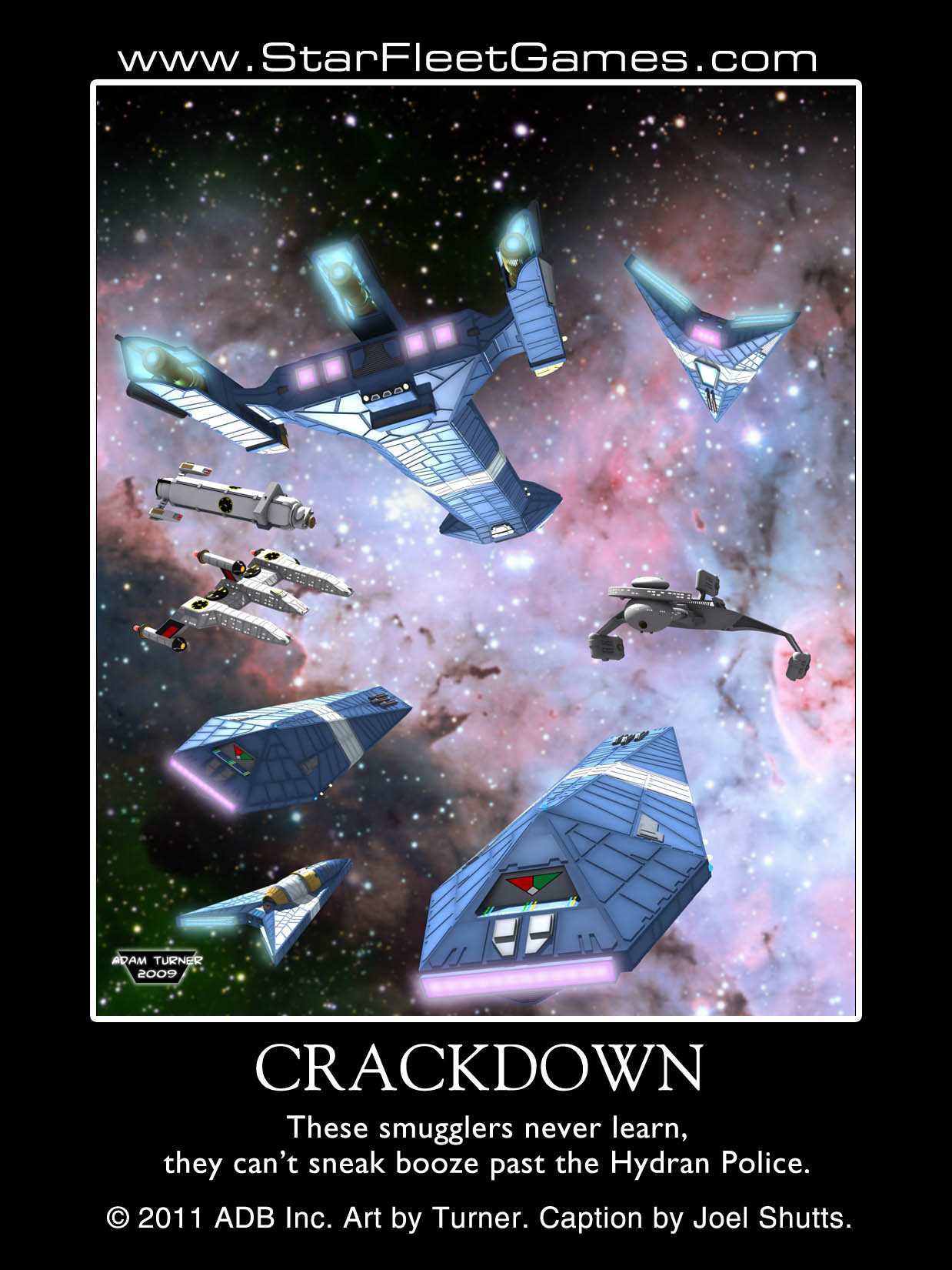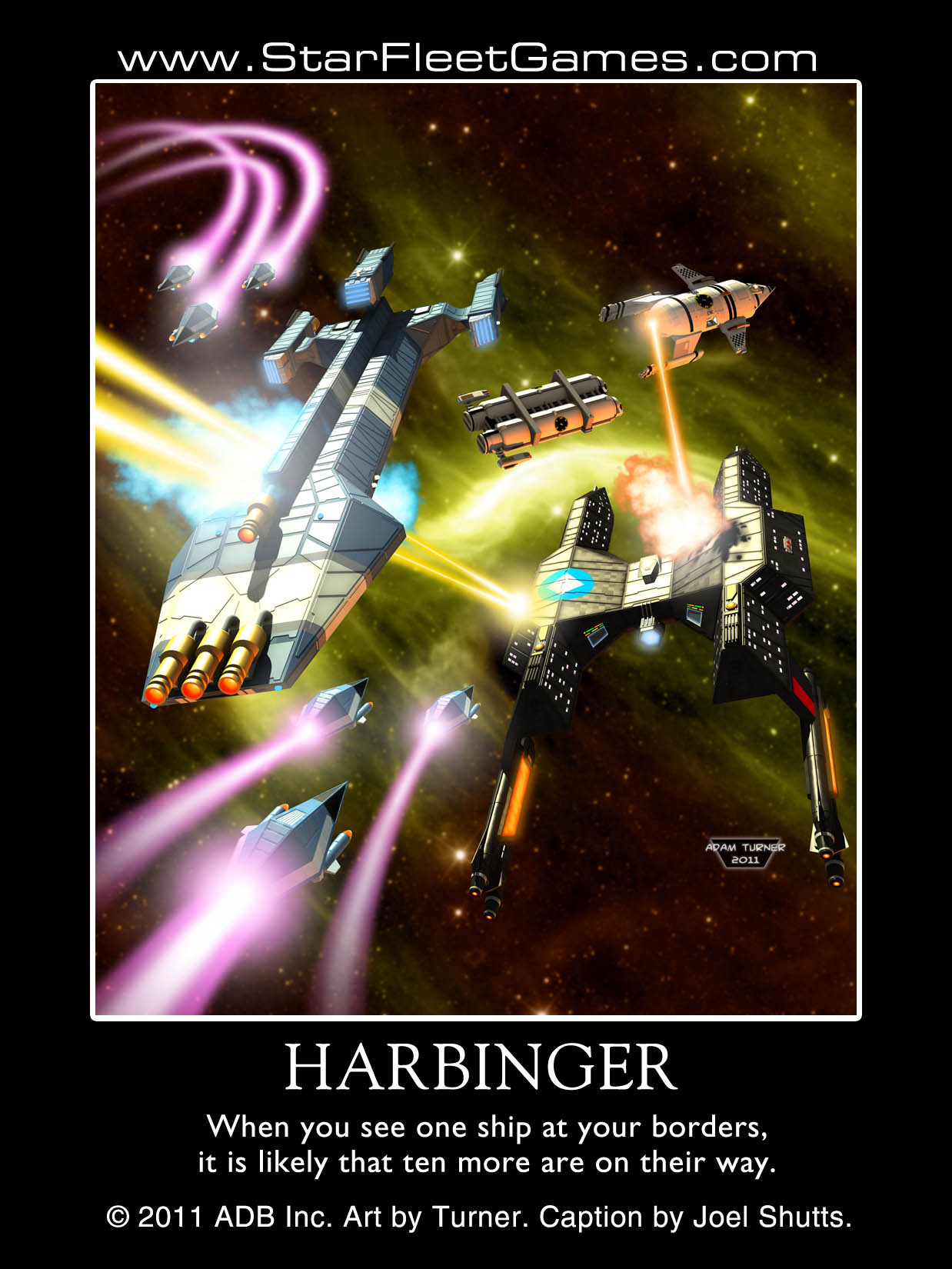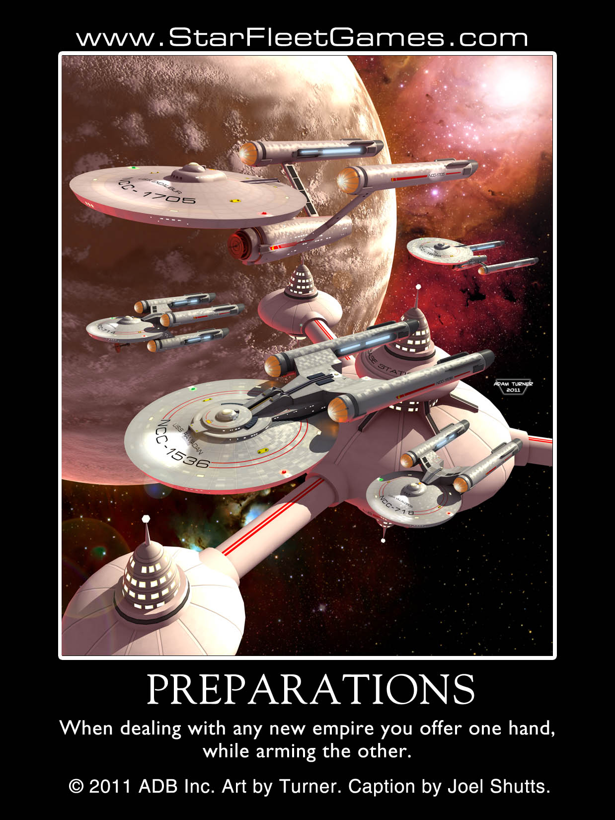 (no avatars or sigs), it is a vital part of ADB, Inc.'s communications. Batteries are the most critical system on an Andromedan ship. Here are some tactics for getting the most from your batteries as an Andromedan, and getting around them as a non-Andromedan. Surprisingly to many players, most Kzinti ships lack double drone control. Furthermore, while the type-C drone racks can launch two drones in a single turn, they cannot be launched within twelve impulses of each other. The following tactics can help minimize these limitations for maximum drone concentration and utility: F&E Strategy of the Month Klingons, are you tired of attacking the Hydran ships attempting to cross Klingon territory, crippling several or killing a ship or two, only to have them retreat closer to Federation territory? Demotivationals Throughout the month our graphics director places on the website various cards called Demotivationals. These are like postcards with an image and a phrase that is often used for humor. To see our previous Demotivationals click here. Mini of the Month Starline 2500 Federation Fleet |