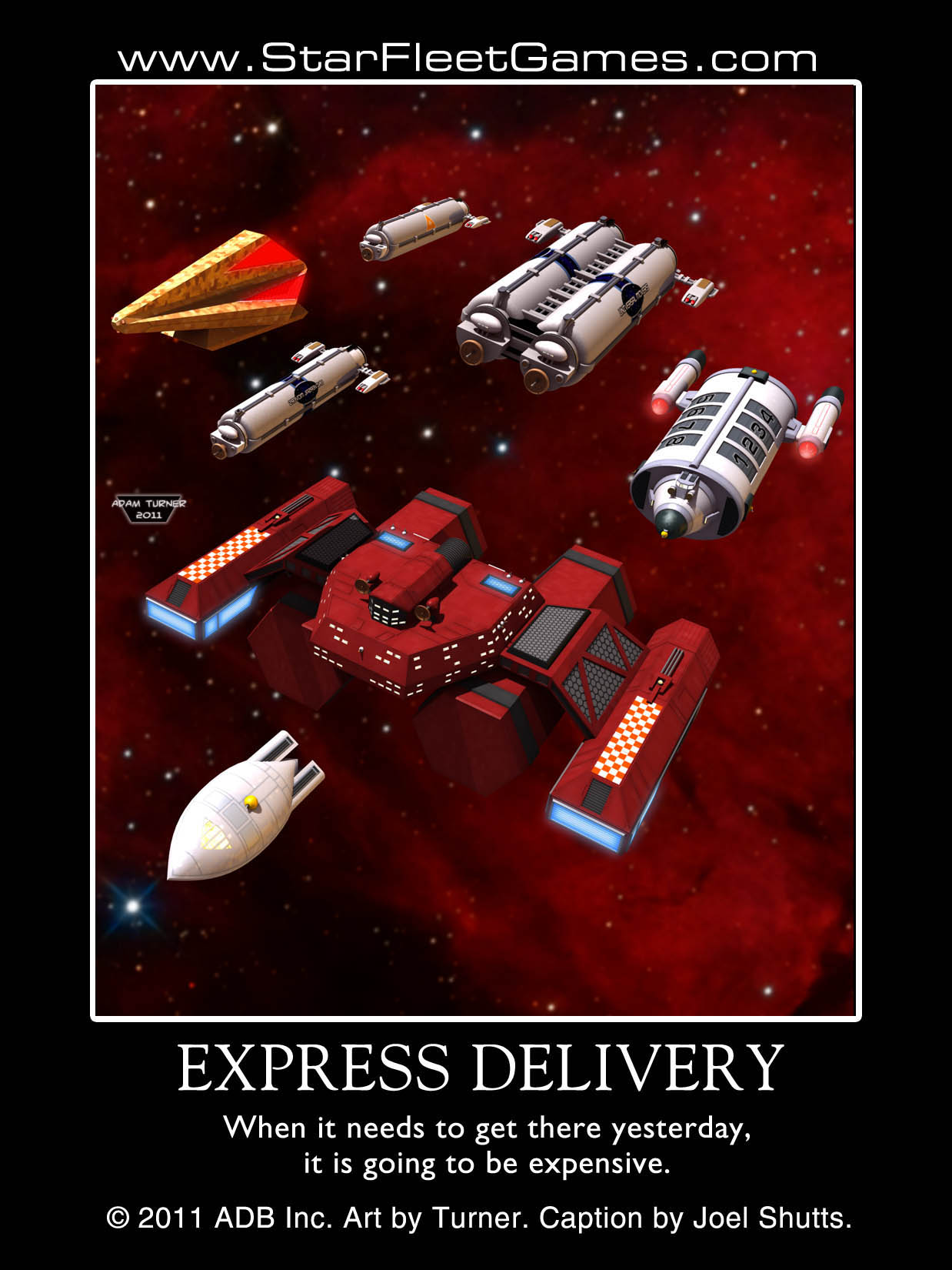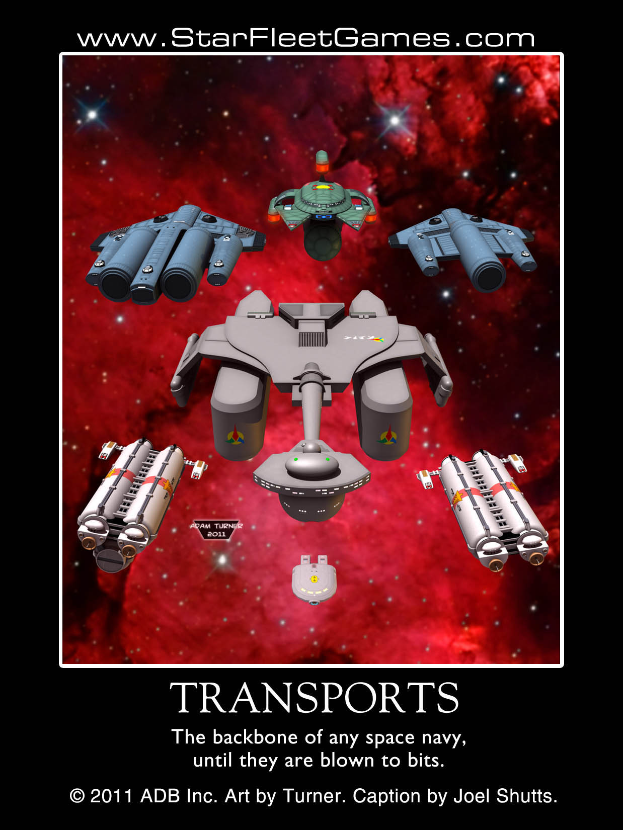 SHIPPING NEWS: We always hate to hear that either UPS or the US Postal Service has raised rates. In January, there was a double whammy in that both did. Unfortunately we do have to pass that on to our customers. While the shipping rates assume "worst case scenario," if we find we can ship it cheaper, then we'll refund the difference. WEBSITE: Our website, www.StarFleetGames.com, continues to grow and improve. You are welcome to send us your requests, comments, and suggestions. Joel Shutts, our graphics director, continues to update the website, do covers for the new products, shut down pirate websites, help out around the company, and learn more about the game business. One of our newest pages is for Starline 2500 where we display photos and 3d renders of the new starships. FACEBOOK: Jean continues to improve our page on Facebook, adding many new photos and other features. VIDEOS: StarFleetGames has taken its act to YouTube and we now have a YouTube channel. Our goal is to create a video for the new product releases during each month. We have "In the Box" videos to show you what you will see when you unpack your new game. We have also done "Spotlights" on a single product or product line. So pull up a chair and join us at the movies! Our newest uploads are: Star Fleet Marines Part 1 STARBLOG: Our StarBlog has moved to a new URL