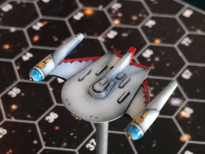 DEMOS AND CONS WITH SFU GAMES Due to the COVID-19 virus, many conventions have been cancelled. We encourage you to check out Star Fleet Battles Online where there is a free demo version. It is a good way to hang out with others who play Star Fleet Battles and Federation Commander. Check it out here: https://www.sfbonline.com/index.jsp Star Fleet Battles games are played regularly in Columbus, Ohio, on Sunday afternoons at the Soldiery. Lee Hanna is the contact person. Download Transmissions HAILING FREQUENCIES: This is our newsletter and will let you know all the news for all our games. You can subscribe here. Have you missed an earlier newsletter? Click here to get caught up! COMMUNIQUE: This monthly magazine repeated much of the same information that Hailing Frequencies does. December 2019 was the last month it was published. Old issues can be downloaded from the Commander's Circle. Mini of the Month Romulan X-Ship King Eagle painted by Kent Ing.