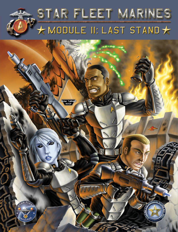 Federation Commander: Reinforcements Attack, Stock # 4110, $29.95 Federation Commander Booster Pack 34 Escorts, Stock #4234, $9.95 Federation Commander Booster Pack 35 Cops & Raiders, Stock #4235, $9.95 Federation Commander Booster Pack 36 Heavies, Stock #4236, $9.95 Captain's Log #46, Stock #5746, $24.95 Starmada: Battleship Armada, Stock #6105, $16.95 Starmada: Battleship Armada Nova Edition, Stock #6105N, $16.95 Alien Armada Nova Edition, Stock #6103N, $16.95 Distant Armada Nova Edition, Stock #6104N, $16.95 Star Fleet Marines: Last Stand, Stock #2102, $34.95 To be released during 2013 PDF SALES: ADB, Inc. continues its relationship with Steve Jackson Games and their e23 Warehouse. We chose e23 because they have a philosophy that agrees with ours -- our customers are honest and honorable and wouldn't aid people who want to steal our products. Furthermore, we know from experience how devastating a computer crash can be and want our customers to know that they don't have to worry about the loss of their e-products bought through e23. What do we have there? We have created a new page that allows easy access to our PDFs for sale on e23. From here you can see what we currently have posted and have links to those products. RECENTLY RELEASED ON e23 RECENTLY RELEASED ON DRIVE THRU RPG Star Fleet Fiction Roger Smith watched quietly from his seat beside the ship's Vulcan science officer, his journalist's Personal Access Display Device in hand. As one of the first reporters allowed access to a ship in wartime as part of Star Fleet's experimental embedded journalist program, he knew that his seat here on the bridge was precarious. It had taken him most of the long trip here to convince Guderian's young captain, Commander Jake O'Donnell, to allow him to sit here, not in the backwaters of auxiliary control where he would have been subject to the whims of Guderian's executive officer. The XO was an Andorian who had made it clear in their first meeting that he had little respect for the embed program, less respect for Smith's profession, and no respect at all for Smith.