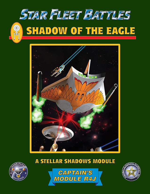 What if the Romulans had developed warp power when everyone else did, instead of decades later? What ships would be flying and how would the galaxy change? This product explores these alternate realities, five possible timeline changes that proceed from singular events and produce a very different universe. Available in print (with counters) and as an eBook, Module R4J is the second new "true SFB module" this year after a gap of a decade since the previous one. Included are 55 new SSDs and four new scenarios, along with detailed alternative history. Rulebook Warehouse 23: http://www.warehouse23.com/products/ADB5638-2 DriveThru RPG: https://www.drivethrurpg.com/product/353877/ Wargame Vault: https://www.wargamevault.com/product/353877/ Print: https://www.starfleetstore.com/rulebooks-c-1_3_4/module-r4j-rulebook-shadow-of-the-eagle-stellar-shadows-p-1301.html B&W SSD book Warehouse 23: http://www.warehouse23.com/products/ADB5638-3 DriveThru RPG: https://www.drivethrurpg.com/product/353879/ Wargame Vault: https://www.wargamevault.com/product/353879/ Print: https://www.starfleetstore.com/ssd-books-c-1_3_33/module-r4j-ssds-shadow-of-the-eagle-stellar-shadows-p-1302.html Color SSD book (available as an e-book only) Warehouse 23: http://www.warehouse23.com/products/ADB5638-3C DriveThru RPG: https://www.drivethrurpg.com/product/353880/ Wargame Vault: https://www.wargamevault.com/product/353880/ The complete module, including die-cut counters, is available from your local game store or direct from ADB: https://www.starfleetstore.com/new-ship-modules-c-1_15/module-r4j-shadow-of-the-eagle-stellar-shadows-p-1300.html